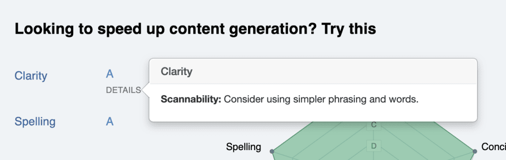This breakdown will give you an idea of how your prospect will perceive your subject line, both with letter grades A through F, and a graphical representation.