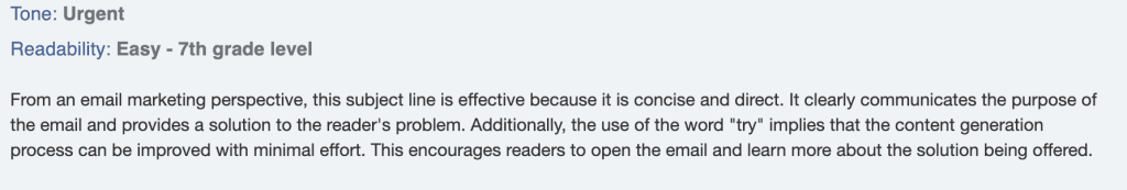 One way to leverage our subject line analyzer would be to take a proven subject line (one that exceeded your benchmarks) and use it as a guide for future message test experiments. Does your proposed subject line’s analysis closely match the previously successful one?
