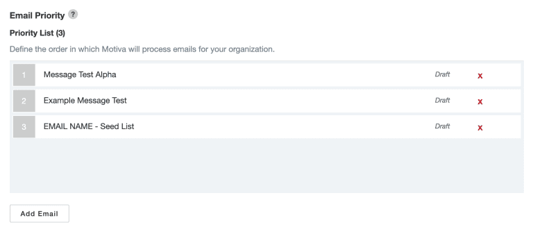 Another possible scenario would be if you want one campaign to take precedence over another. Going back to our example of Campaign A and Campaign B, let’s say that you needed Campaign B to take priority. From the Frequency tab within Motiva, you have the option of configuring which emails should take priority: