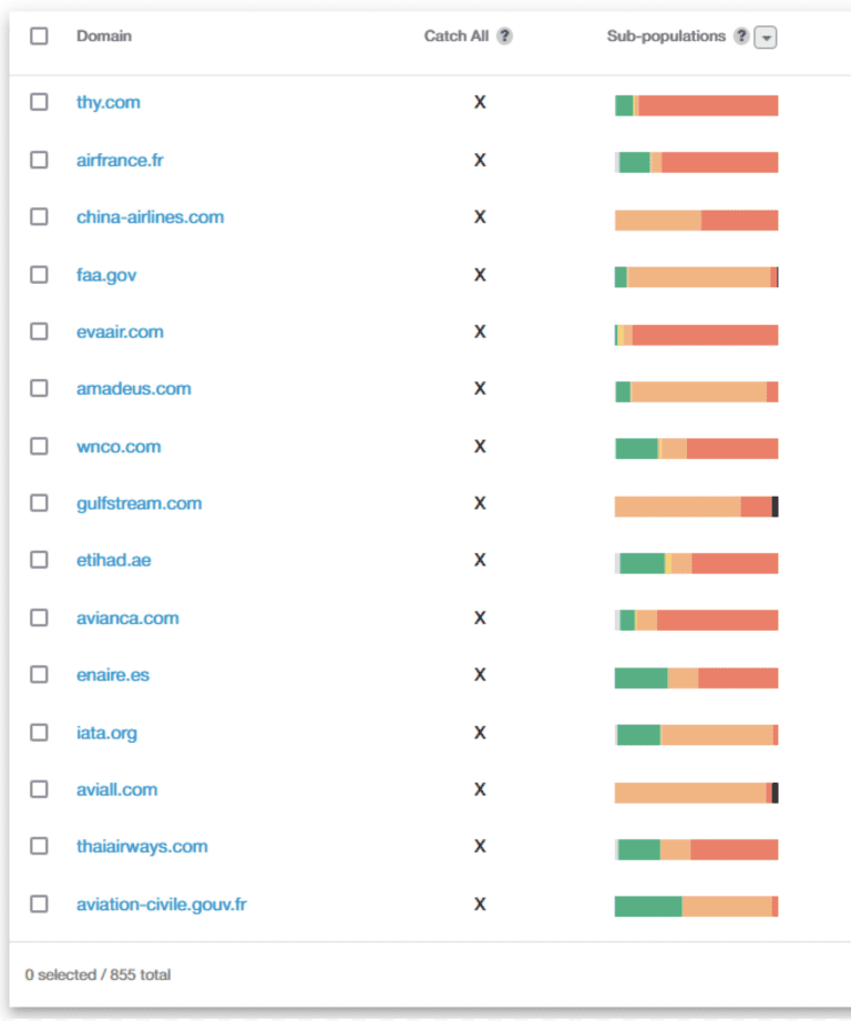 As part of our Dark Pool Scoring, we now provide in-depth domain analysis. It will show you which domains are completely unresponsive, which are likely associated with catch-all email addresses (pictured below), and which are bouncebacks probably due to misspelled domain names.