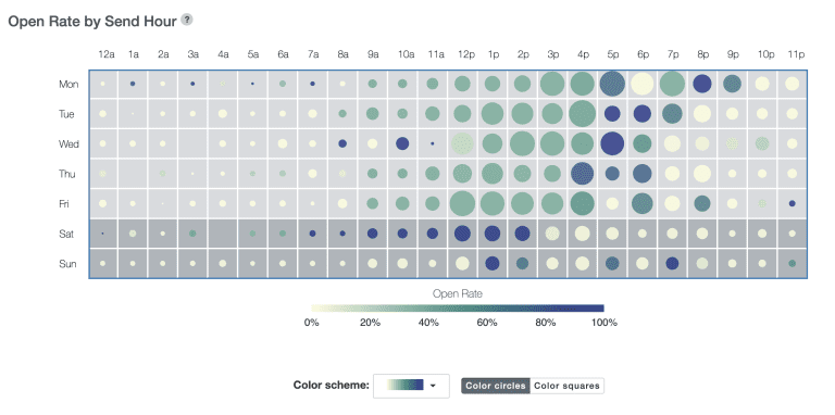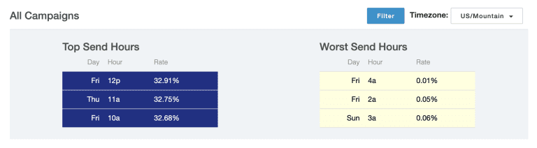 This can help refine send strategies overall, and help identify key times of the day and week to target with other types of campaigns, such as Message Testing and Simple email blasts.