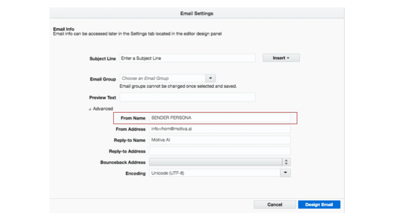 All it takes to make several email versions for a Sender Persona test is to change one field when you’re designing a new email.