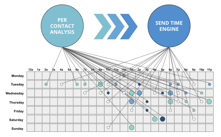 What it’s not: a global “best hour” rule or a random spread. It’s individualized scheduling that gets smarter as your list behavior shifts.