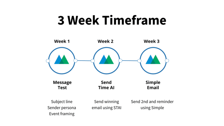 Ideally, you’ll have three to four weeks to promote the event. You can use Motiva Message Testing and Send Time AI to increase the campaign’s unique open, unique clickthrough and conversion rates.