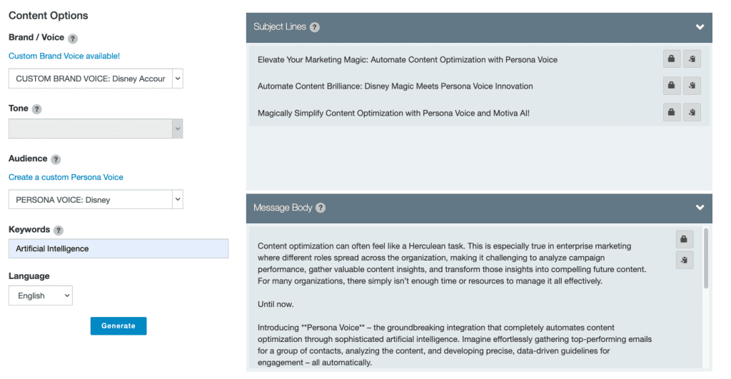 Combine Motiva’s Generative AI and your own data to develop brand voices, targeted persona voices and message variations across channels. Test variations seamlessly with zero additional effort. Let Motiva do all the interpretation for you. Rinse & repeat.